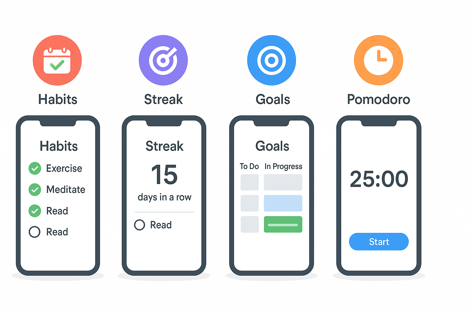 - Habit apps like Habitica and Streaks push you toward consistency.